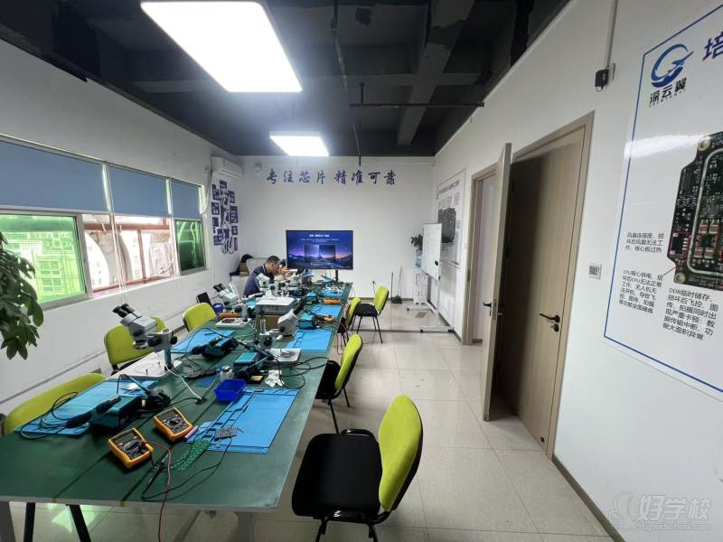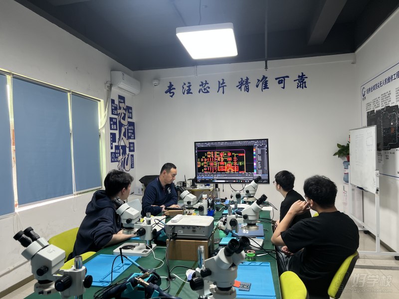 深圳龍華校區(qū)專(zhuān)屬實(shí)訓(xùn)教室,配備全套維修工具(返修臺(tái)、熱風(fēng)槍、示波器、萬(wàn)用表等)、大疆全系真機(jī)實(shí)操設(shè)備
