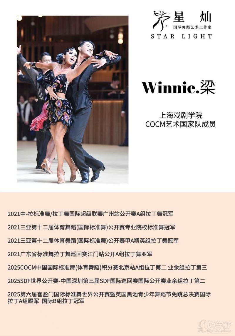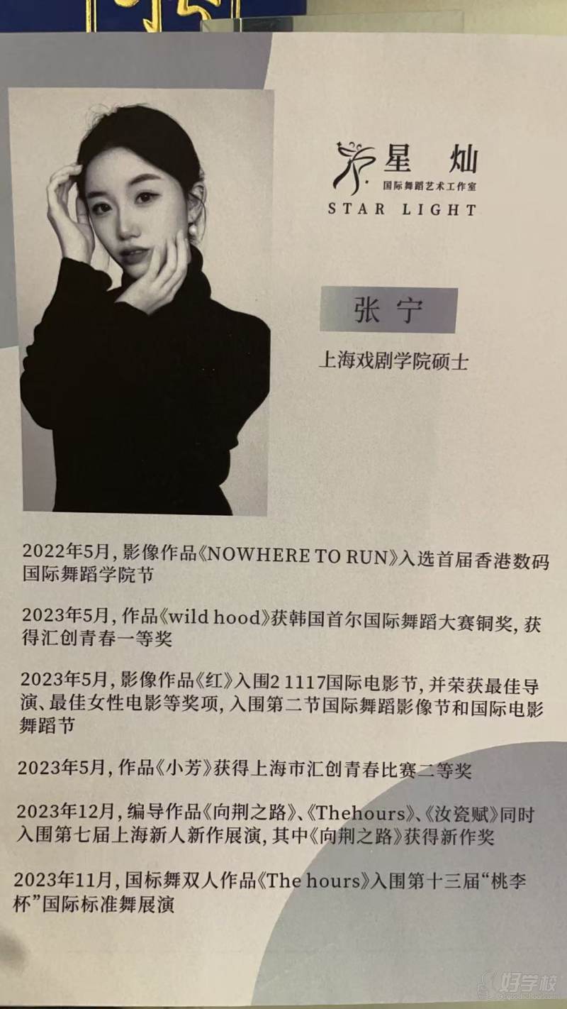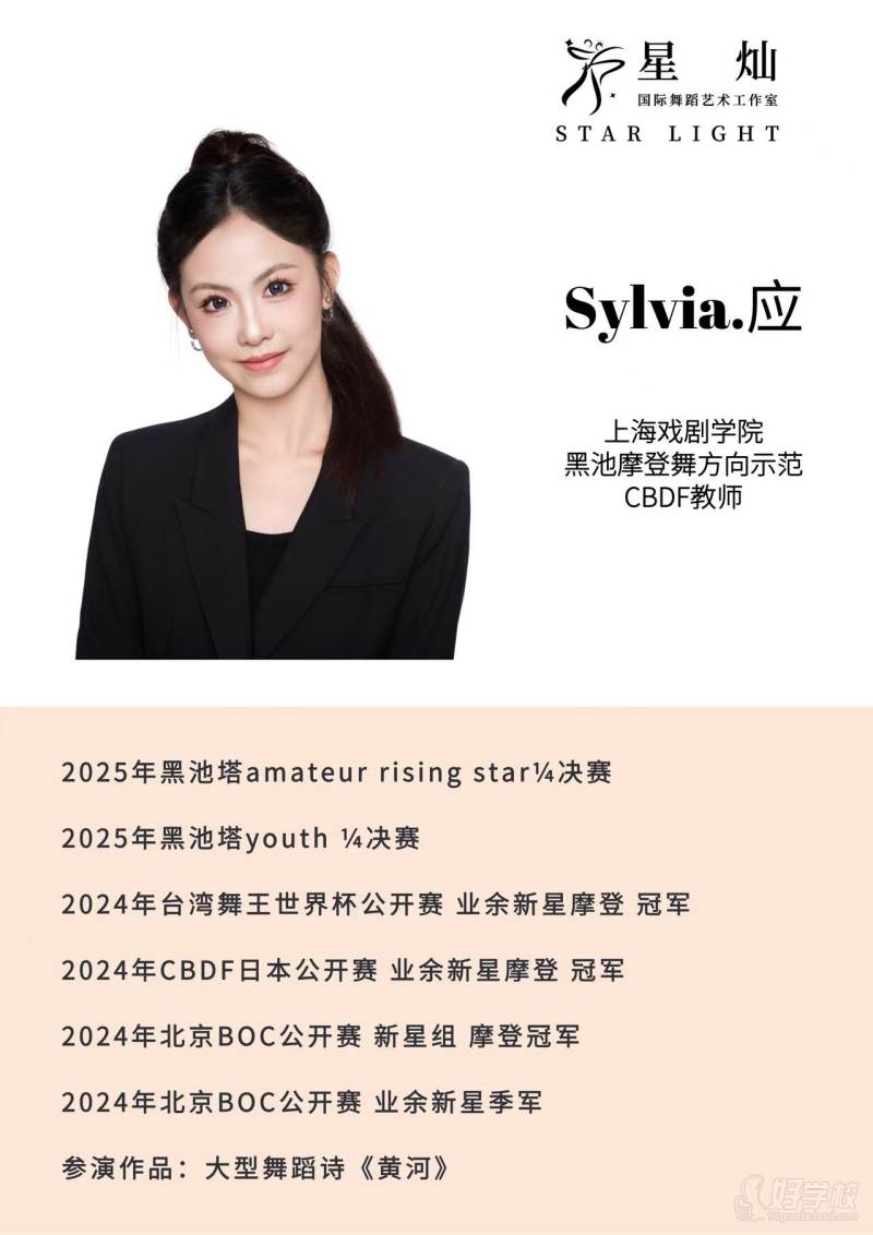本平臺(tái)為 [上海星燦國(guó)際舞蹈藝術(shù)教育] 官方授權(quán)信息發(fā)布渠道,本頁(yè)面所有招生信息由合作方提供并授權(quán)確認(rèn)發(fā)布,內(nèi)容責(zé)任由提供方全權(quán)承擔(dān)。 如發(fā)現(xiàn)信息虛假、有誤等,請(qǐng)點(diǎn)擊反饋:聯(lián)系客服。