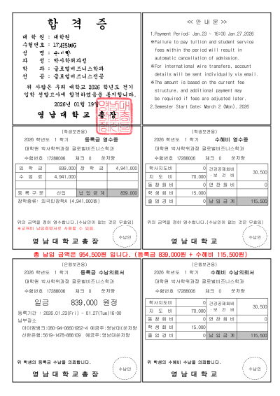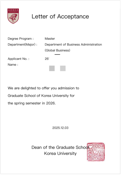 楊一笑高麗大錄取