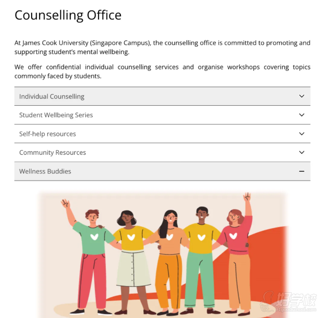 作為一所非常關(guān)心學(xué)生心理健康的院校,在詹姆斯庫(kù)克大學(xué)(新加坡校區(qū))的校園里,有一個(gè)溫暖而專業(yè)的學(xué)生志愿者項(xiàng)目——Wellness Buddies。