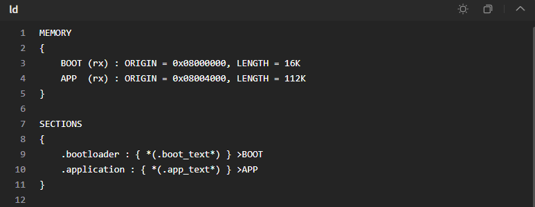 原理:通過修改鏈接腳本,將BootLoader和APP編譯為單個可執(zhí)行文件。