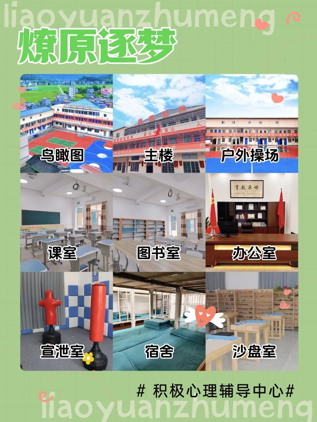 - 專業(yè)教學(xué)區(qū):設(shè)多媒體課室、圖書(shū)室、德育室,更有完備心理健康專區(qū),涵蓋心理咨詢室、沙盤室、心理宣泄室等,通過(guò)科學(xué)干預(yù)解開(kāi)孩子心結(jié),疏導(dǎo)負(fù)面情緒。