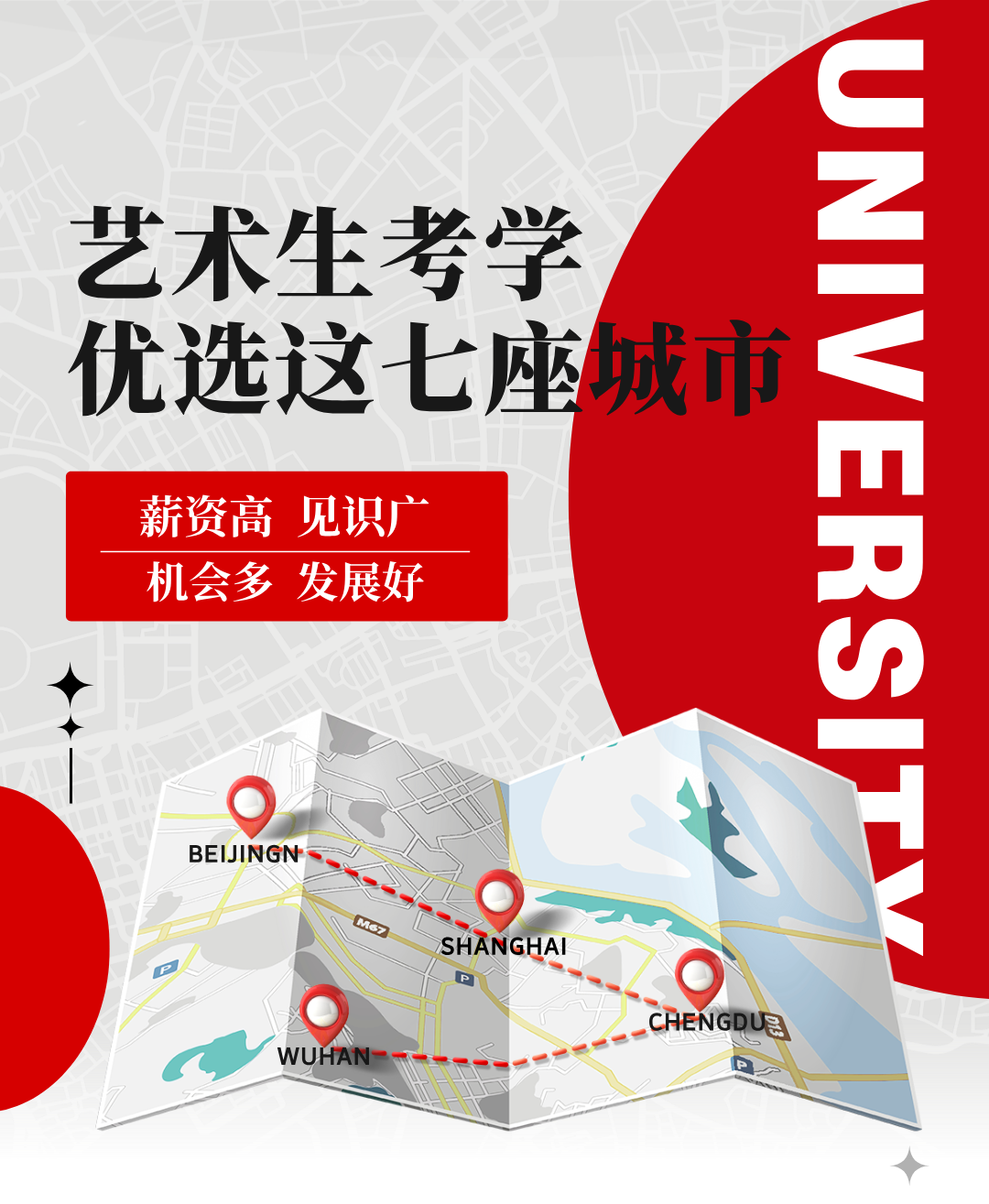 在國內(nèi),有這樣一批城市,它們或是名校云集、學(xué)術(shù)氛圍濃厚,或是經(jīng)濟蓬勃發(fā)展、產(chǎn)業(yè)資源豐富,或是生活環(huán)境宜人、幸福感拉滿,又或是就業(yè)機會遍地、發(fā)展前景廣闊……憑借著這些獨特優(yōu)勢,它們每年都會成為無數(shù)藝考生心向往之的求學(xué)勝地。