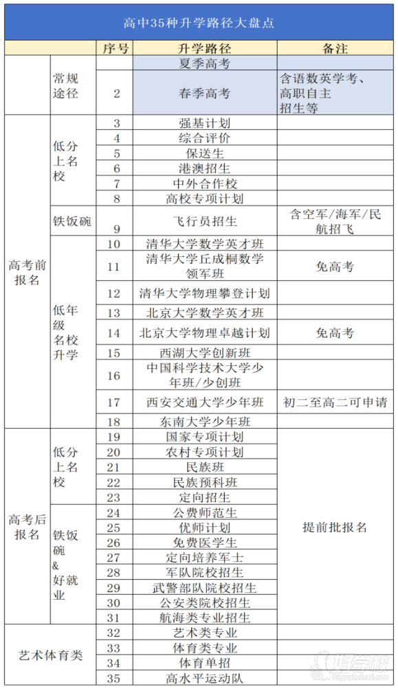 看完這 35 種升學(xué)路徑,是不是覺得 “除了高考還有這么多機(jī)會”?別讓孩子只困在 “唯分?jǐn)?shù)論” 里 —— 成績拔尖能沖強(qiáng)基綜評,中等生能走???、4+0,偏科生也能靠特長賽道突圍。
