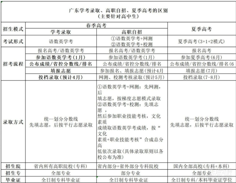 高職自主招生是指廣東省高等職業(yè)院校自主招收高中、中職對口專業(yè)應(yīng)屆畢業(yè)生、往屆生的一種考試形式,文憑性質(zhì)和普通高考入學(xué)一致,皆為全日制??偝煽儤?gòu)成為語數(shù)英學(xué)考成績+校測/網(wǎng)測成績。