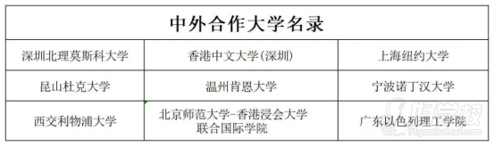 中外合作院校名校如下